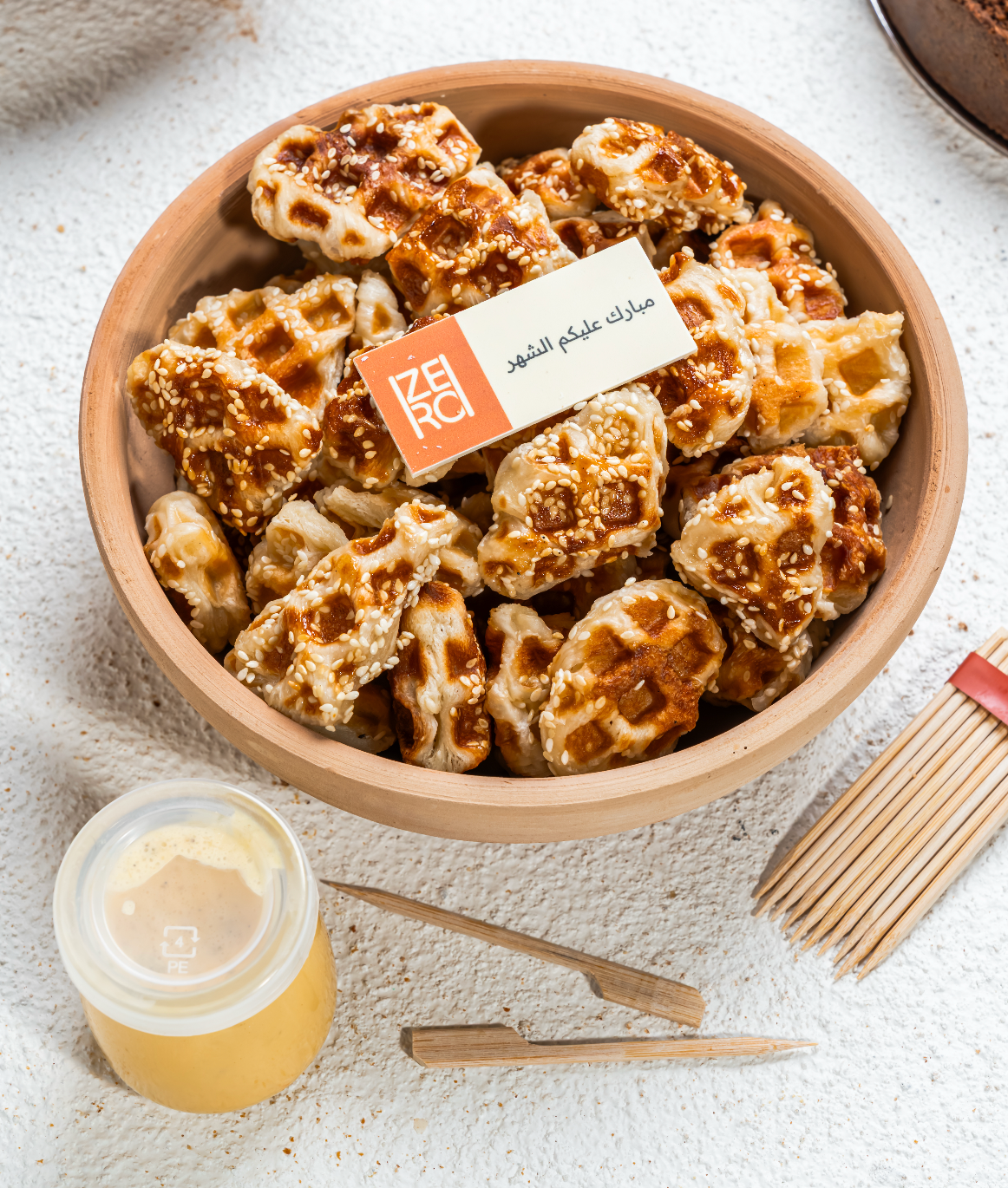 Light and flaky sesame croissant waffled to golden perfection, drizzled with saffron sauce.